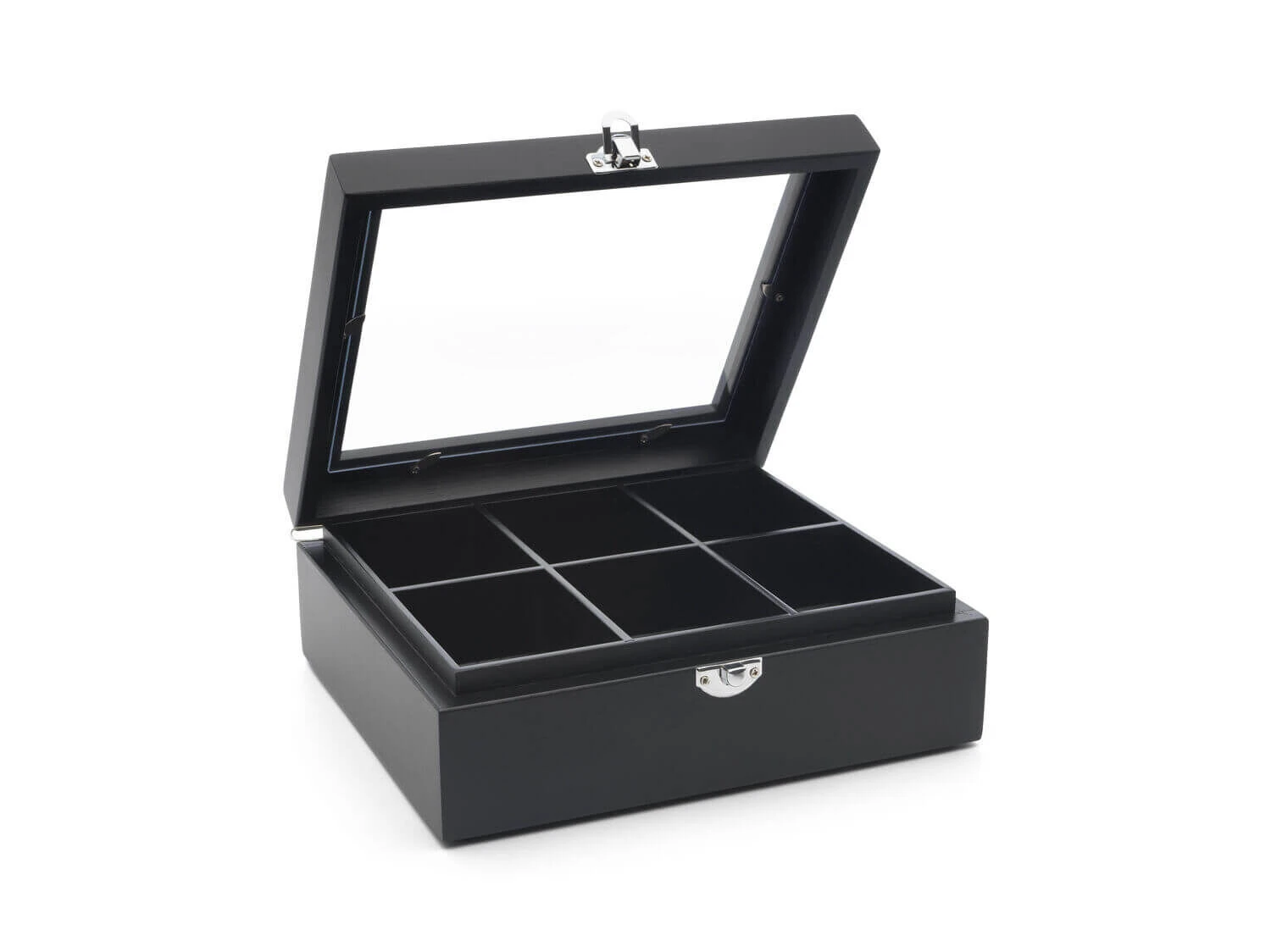 De theedoos van Bredemeijer is gemaakt van zwart gekleurd hout en voorzien van een glazen venster in het deksel. De kist heeft een afmeting van 28,5 x 27 x 7 cm (l x b x h). De kist heeft 6 vakken voor het opbergen van theezakjes.