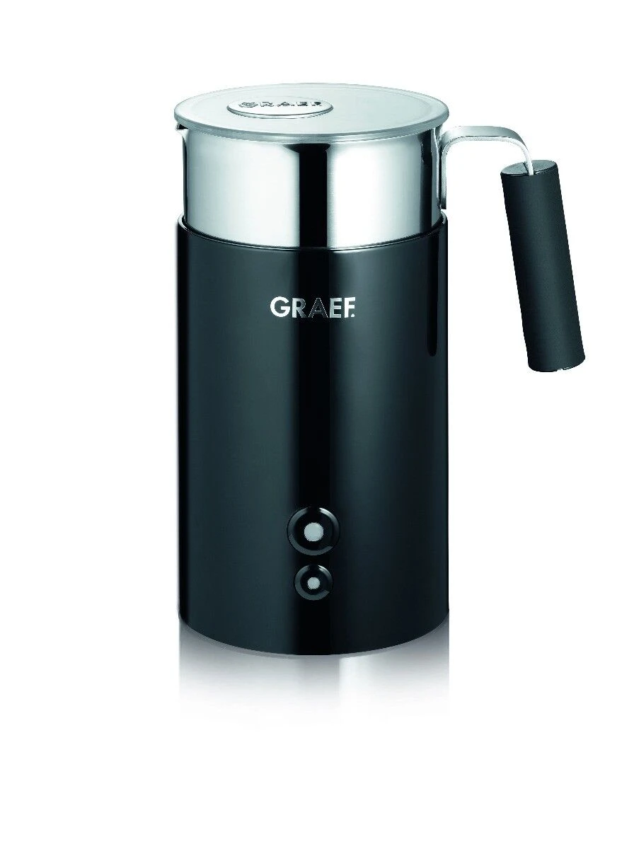 De zwarte elektrische melkopschuimer van Graef is van kunststof en heeft een maximale inhoud van 200 ml melk voor opschuimen van melk tot 400 ml schuim. Voor het verwarmen van melk heeft de schuimer een capaciteit van 350 ml. Met een vermogen van 545 W (bij 230 Volt) wordt uw melk in korte tijd verwarmt en geschuimd.
